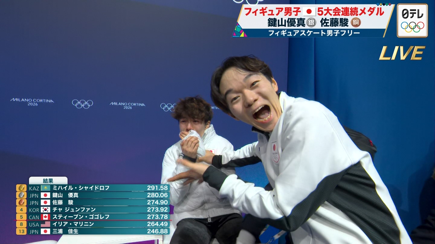 鍵山優真選手(22)が素晴らしい演技で銀メダルを獲得し、2大会連続のメダリストとなりました!本当に素晴らしい結果です。