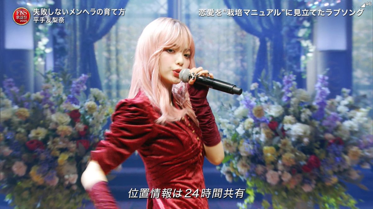 元欅坂46で女優・歌手の平手友梨奈(24)が3日、フジテレビ「2025 FNS歌謡祭」(後6・30)に出演。パフォーマンスを披露した。