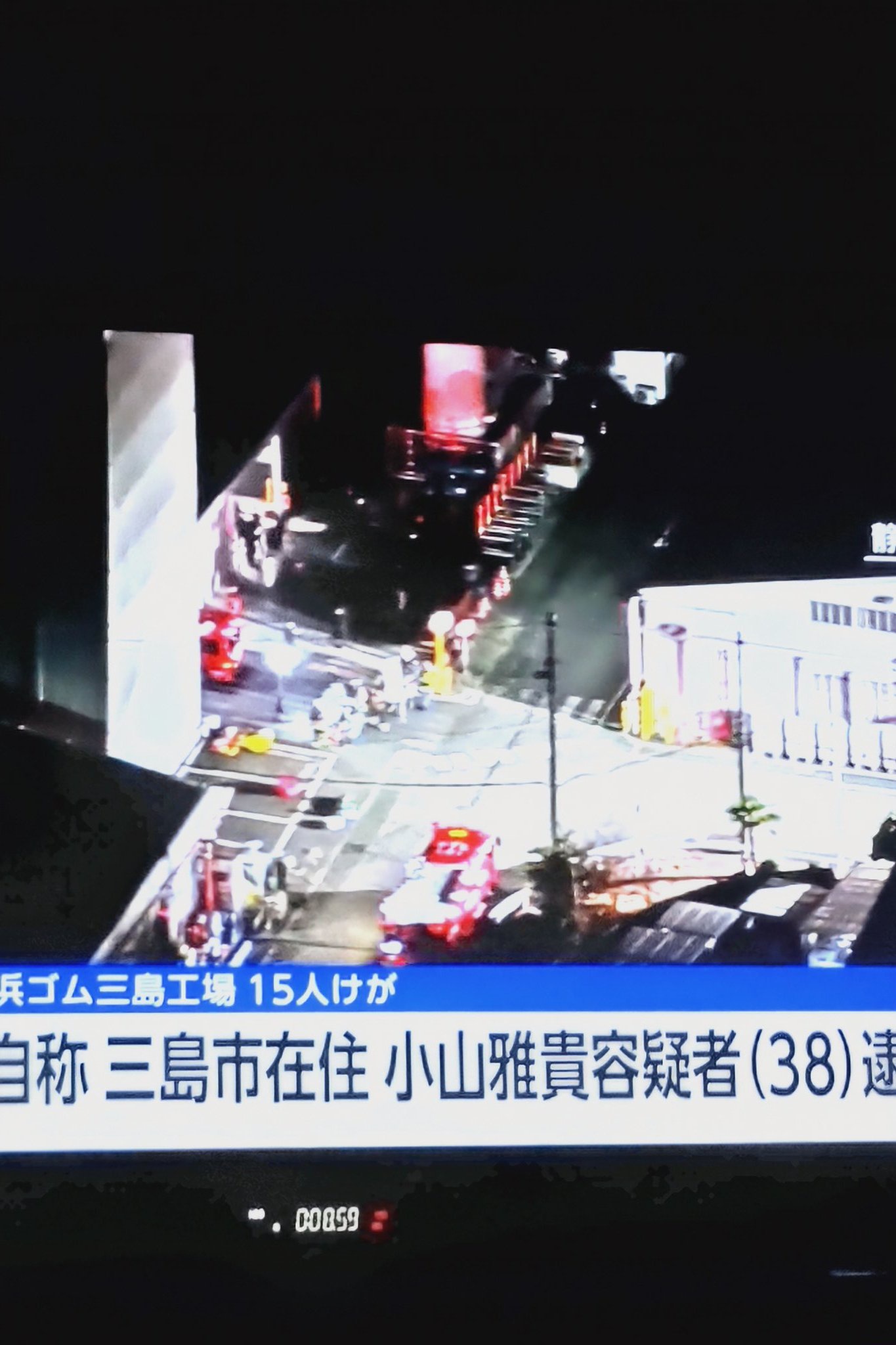 「救急車が何台も」 横浜ゴム三島工場の刺傷事件 負傷者15人に 26日午後4時半ごろ、静岡県三島市南二日町にある横浜ゴム三島工場から「何者かに刃物で5、6人が刺された。スプレーと液体をまいた」と119番があった。 (出典:毎日新聞) |