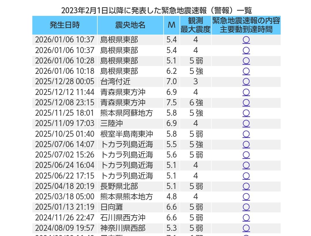 1月6日の午前10時18分ごろに島根県東部を震源地として地震が発生しました。この地震で、長周期地震動の階級4が観測されています。階級4は、はわないと移動できない状態です。【長周期地震動】