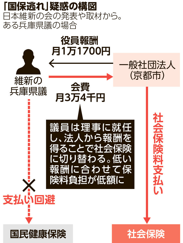 「国保逃れ」として兵庫維新の会に所属する4名の議員が疑いに関して認め処分される方向となっています。この問題は国保の脱法的行為として問題視となっています。