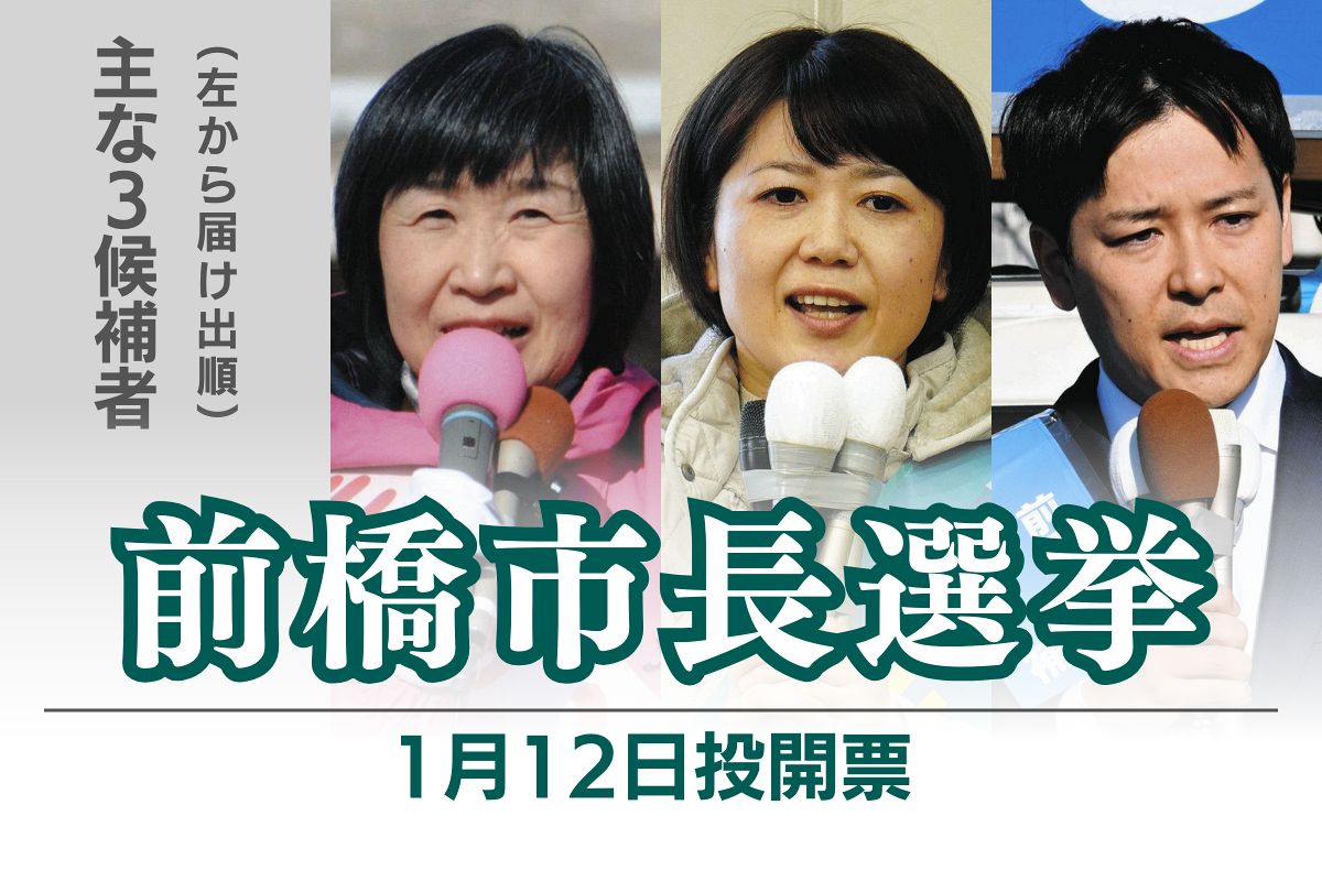 元前橋市議の店橋世津子氏(64)=共産推薦、元同県みどり市議の海老根篤氏(78)、農業の高橋聡哉氏(66)は、支持が広がらなかった。https://www.sankei.com/article/20260112-6ZZYB4JPPBK2BMJHGOVWS5VALM/
