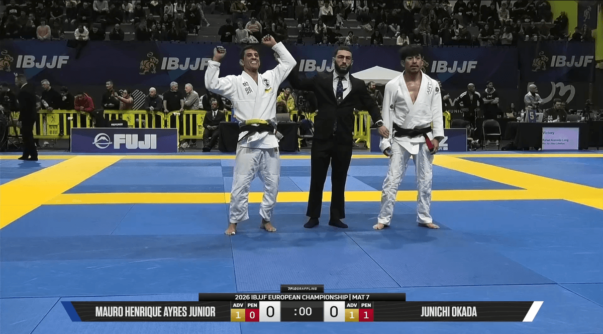 岡田准一(45=ARTA BJJ広尾)が18日、ポルトガルの首都リスボンで開催中の国際ブラジリアン柔術連盟(IBJJF)主催の、欧州最大の柔術大会「ヨーロピアン2026」マスター4黒帯ライトフェザー級(64キロ以下)1回戦に出場。