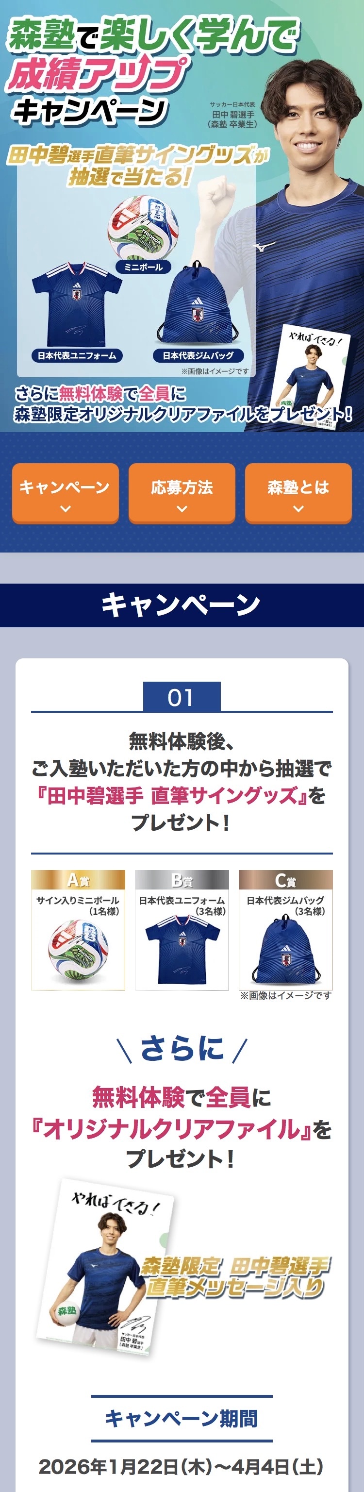 田中碧が学習塾のCM出演!公式アンバサダーに!