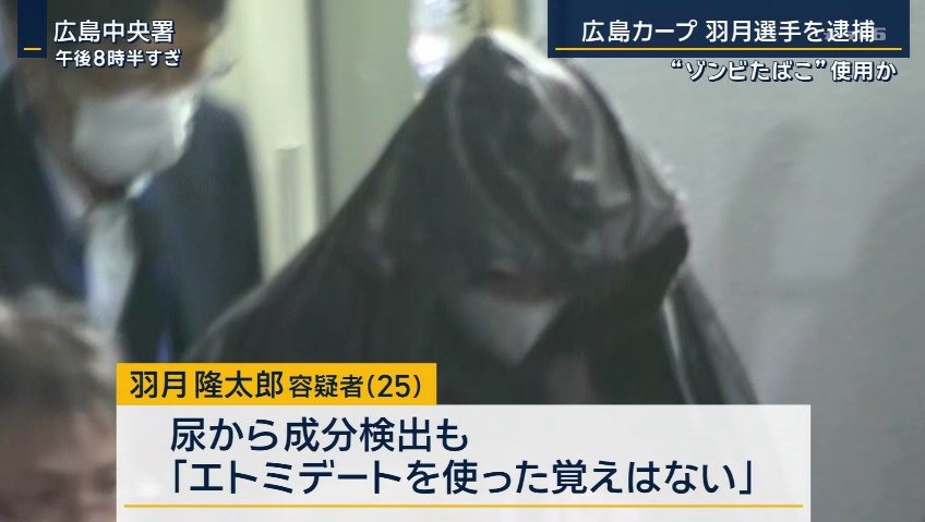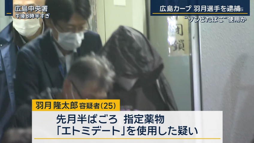 「ゾンビたばこ」と呼ばれる指定薬物を使用した疑いで警察は27日、広島東洋カープの羽月隆太郎選手(25)を逮捕しました。