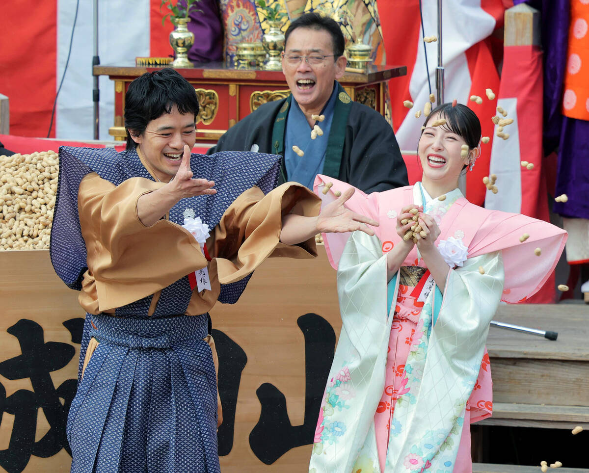 NHK大河ドラマ「豊臣兄弟!」に出演する俳優の池松壮亮と浜辺美波が3日、大阪・成田山不動尊で節分祭に参加した。