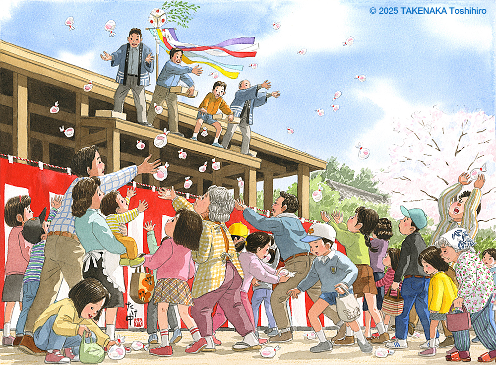 上から撒く奴はちゃんとみんな持って帰ってる。お金を投げるところもある