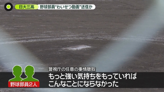 | 日大三高・野球部員2人 少女の“わいせつ動画”送信か 野球部、12日以降の活動を休止 …を書類送検甲子園で春夏を通じて3回優勝するなど、強豪校として知られる日本大学第三高校野球部。 その日大三高の野球部員である17歳と16歳の男子生徒が… (出典:2:34) |