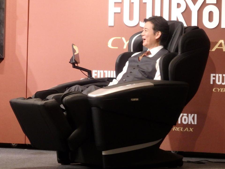 同社は「最も長期にわたって自動マッサージチェアを発売している企業」としてギネス世界記録に認定された。これに関連して、唐沢は俳優以外で長く続けていることを「結婚生活じゃないですか。今年で30年目」とにんまりした。