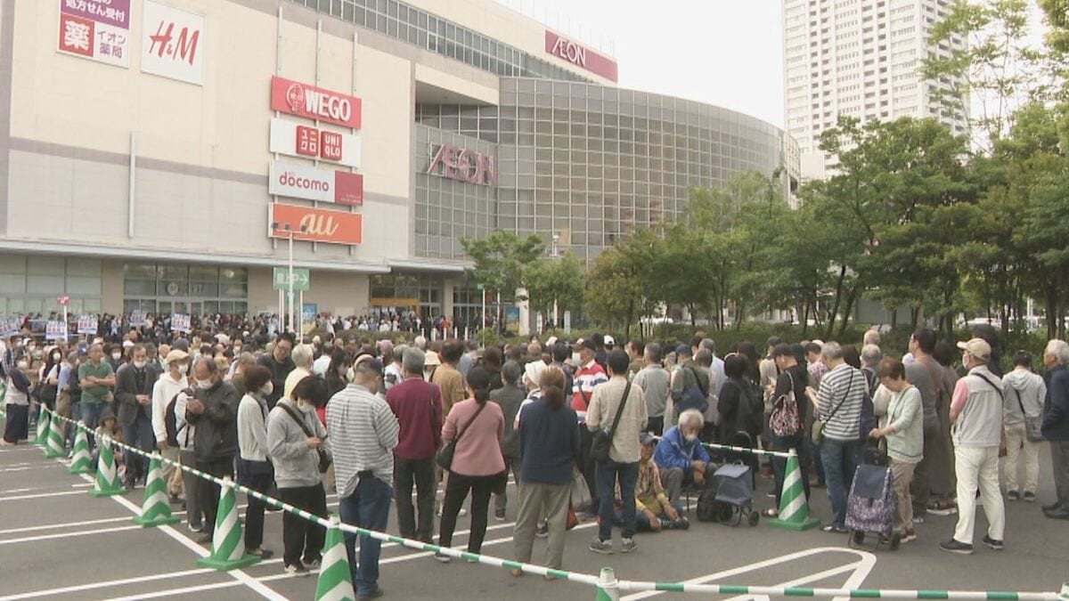 大阪市内のイオンの店舗には、およそ1000人が列を作り開店を待っていました。